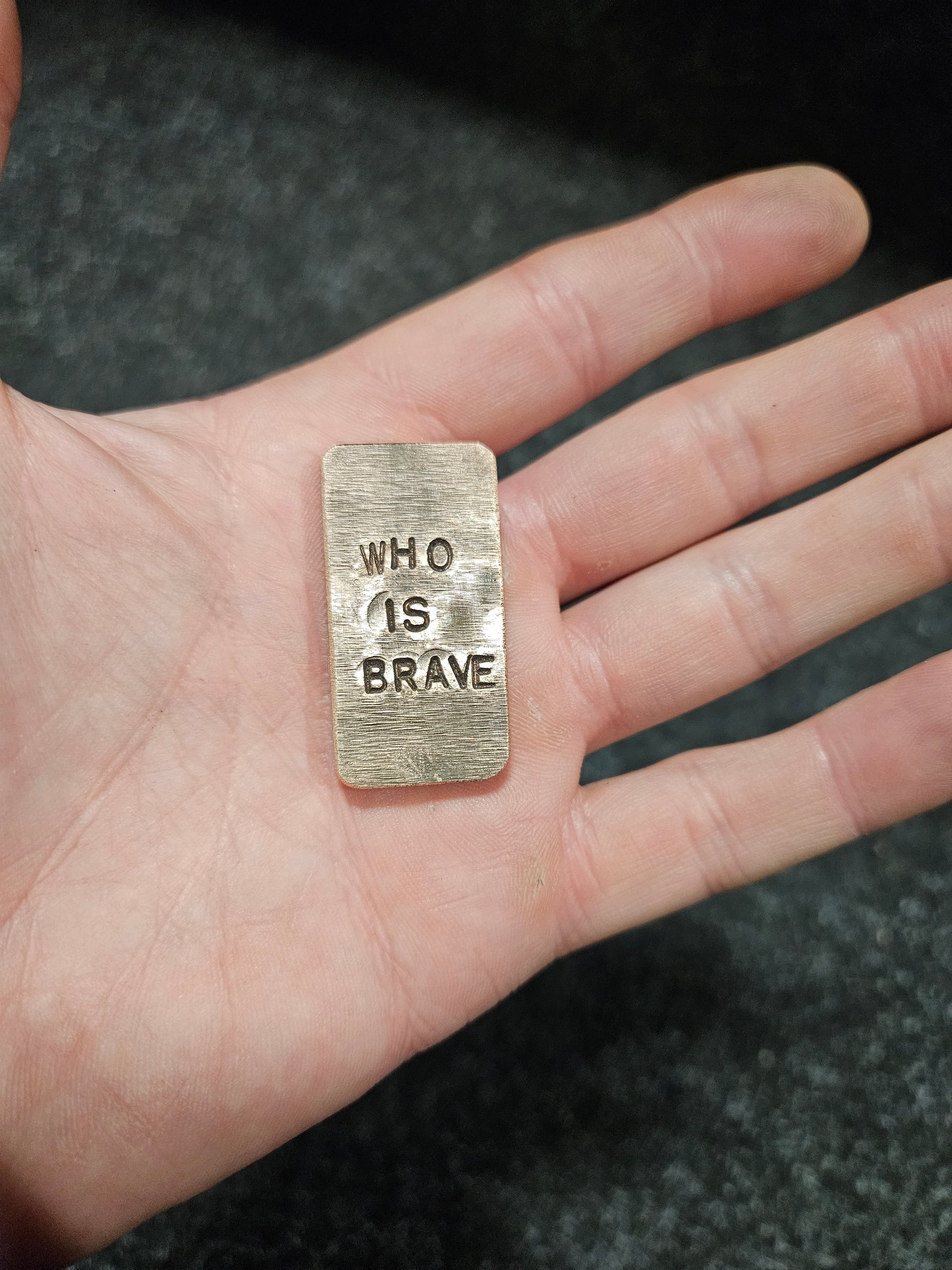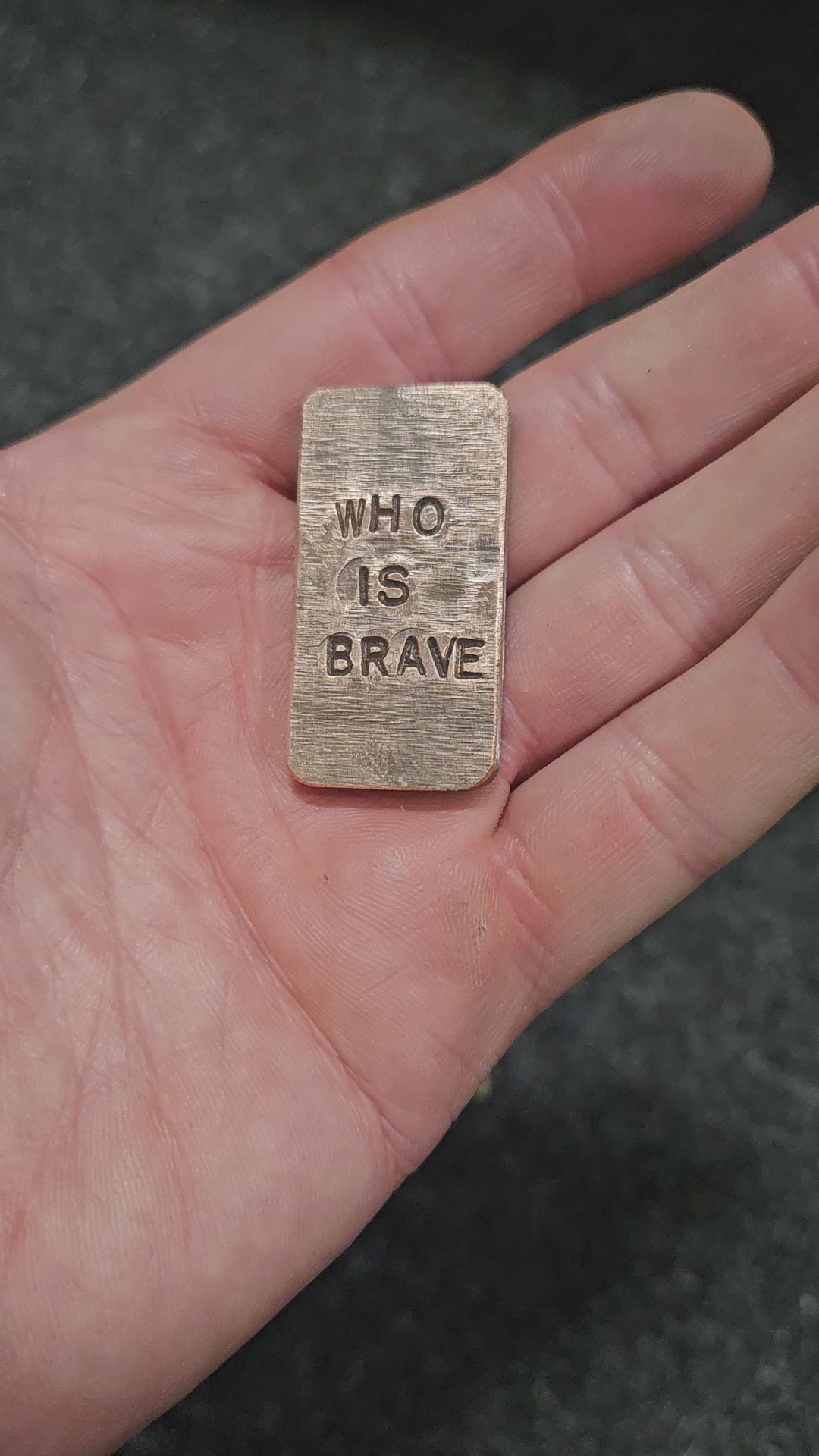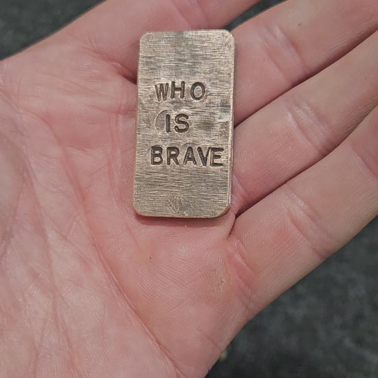 'Who Is Brave, Is Free' Steel and Copper worry stone. Steel and copper Haptic coin. Worry stone, haptic stone, touch stone.
